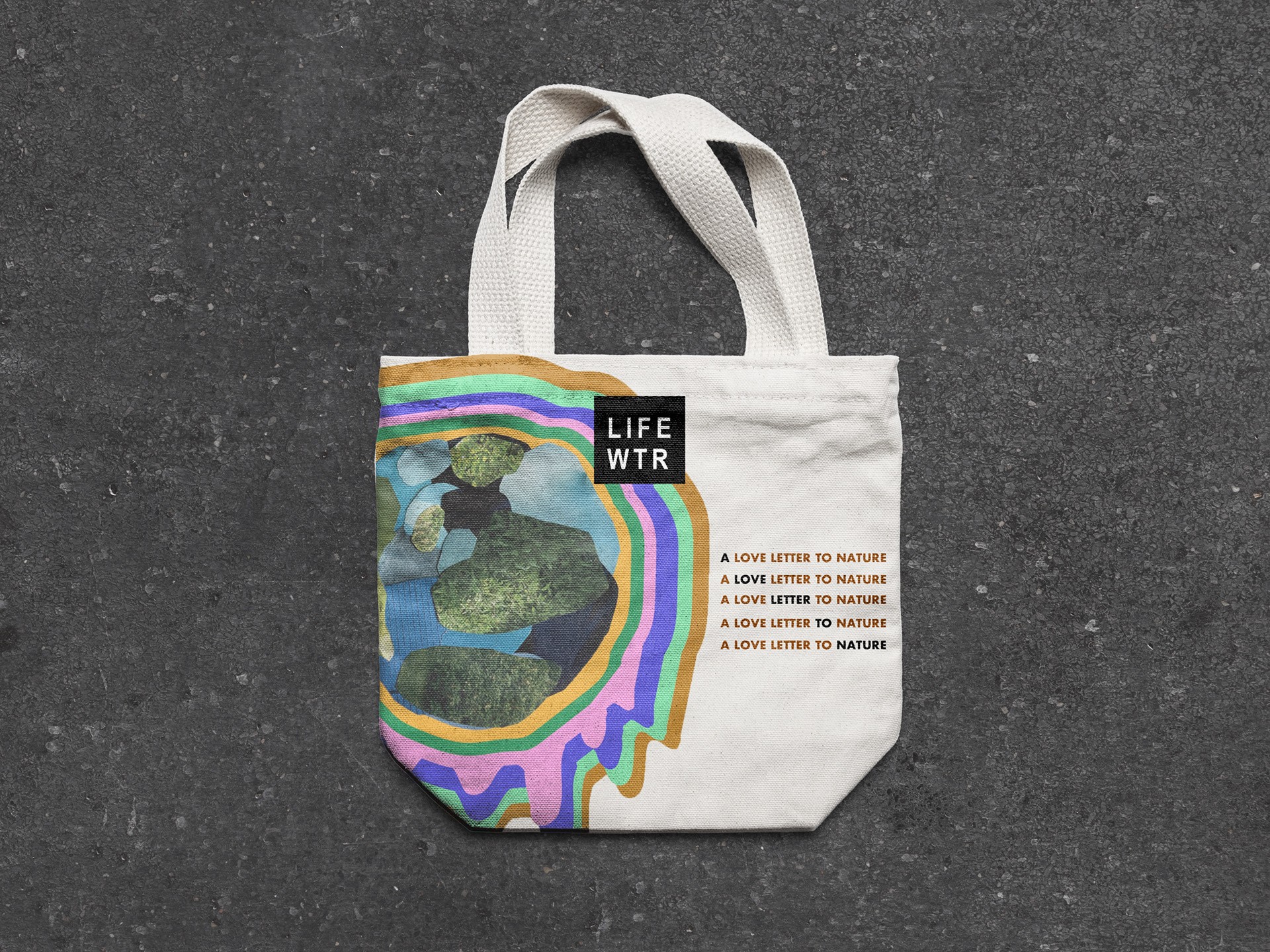 This project was a personal creative endeavor that was not officially associated with Life Water, but was inspired by the brand. I designed graphics using an Earth collage I created from magazine clippings, reflecting the brand's connection to nature and aligning with my aesthetic vision for the project.