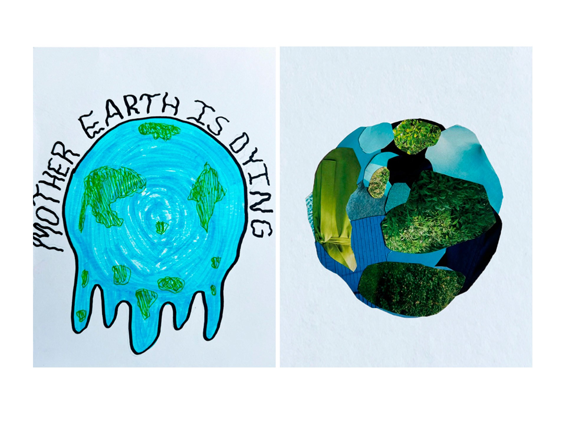 After sketching, I made a physical collage out of magazine clippings and went into Illustrator to incorporate the idea of the Earth melting from my initial sketch in a way that can raise awareness on saving the planet which fits the branding identity of Life Water. I also went into Photoshop and incorporated my design onto a bottle that matched the identity of Life Water.