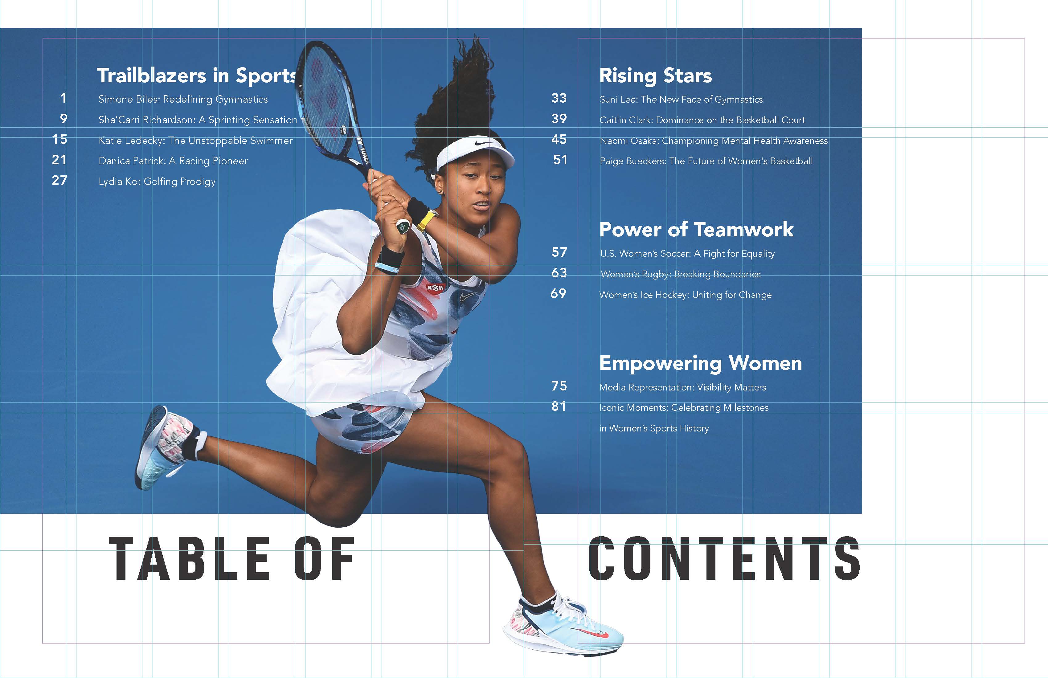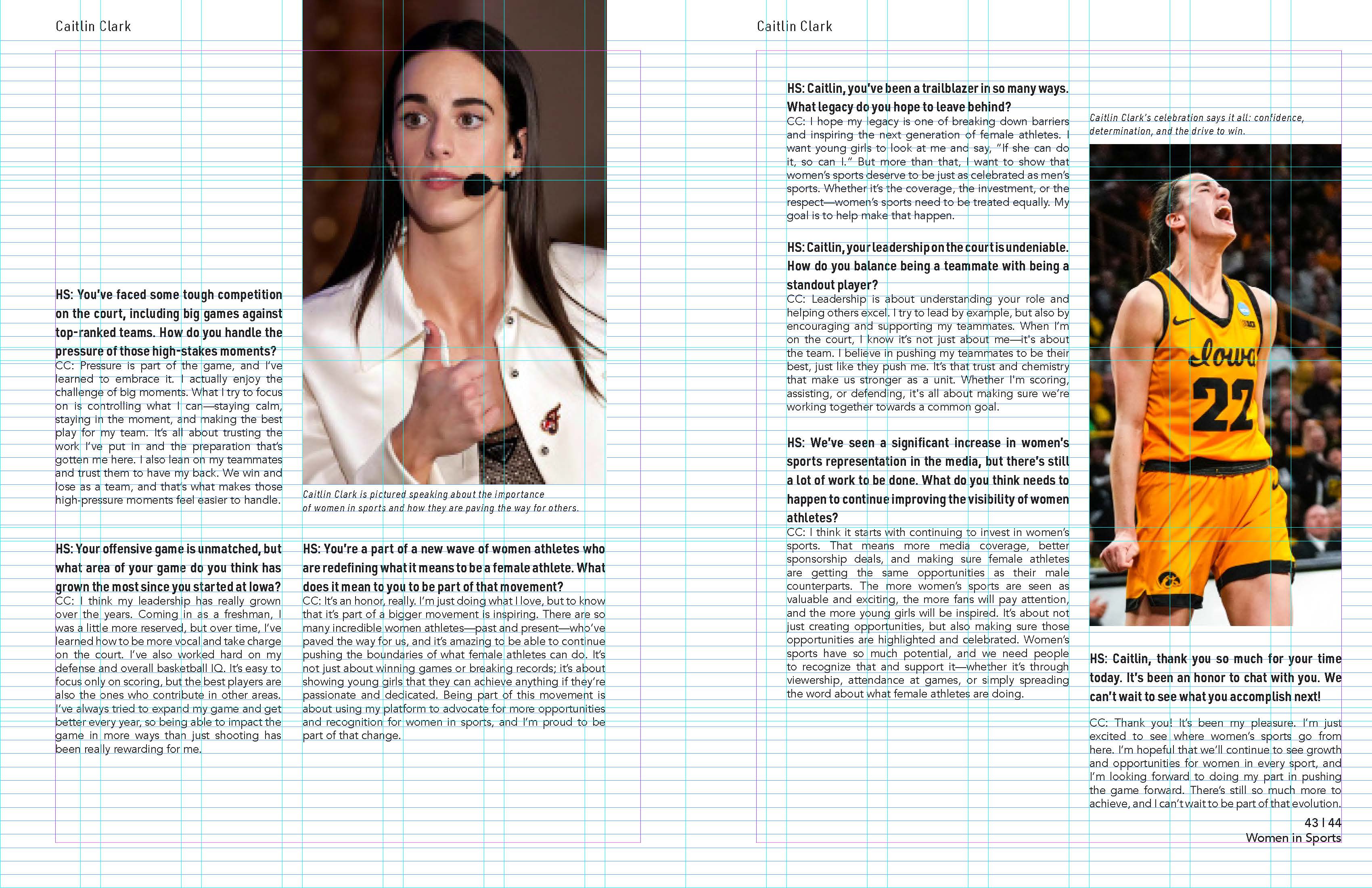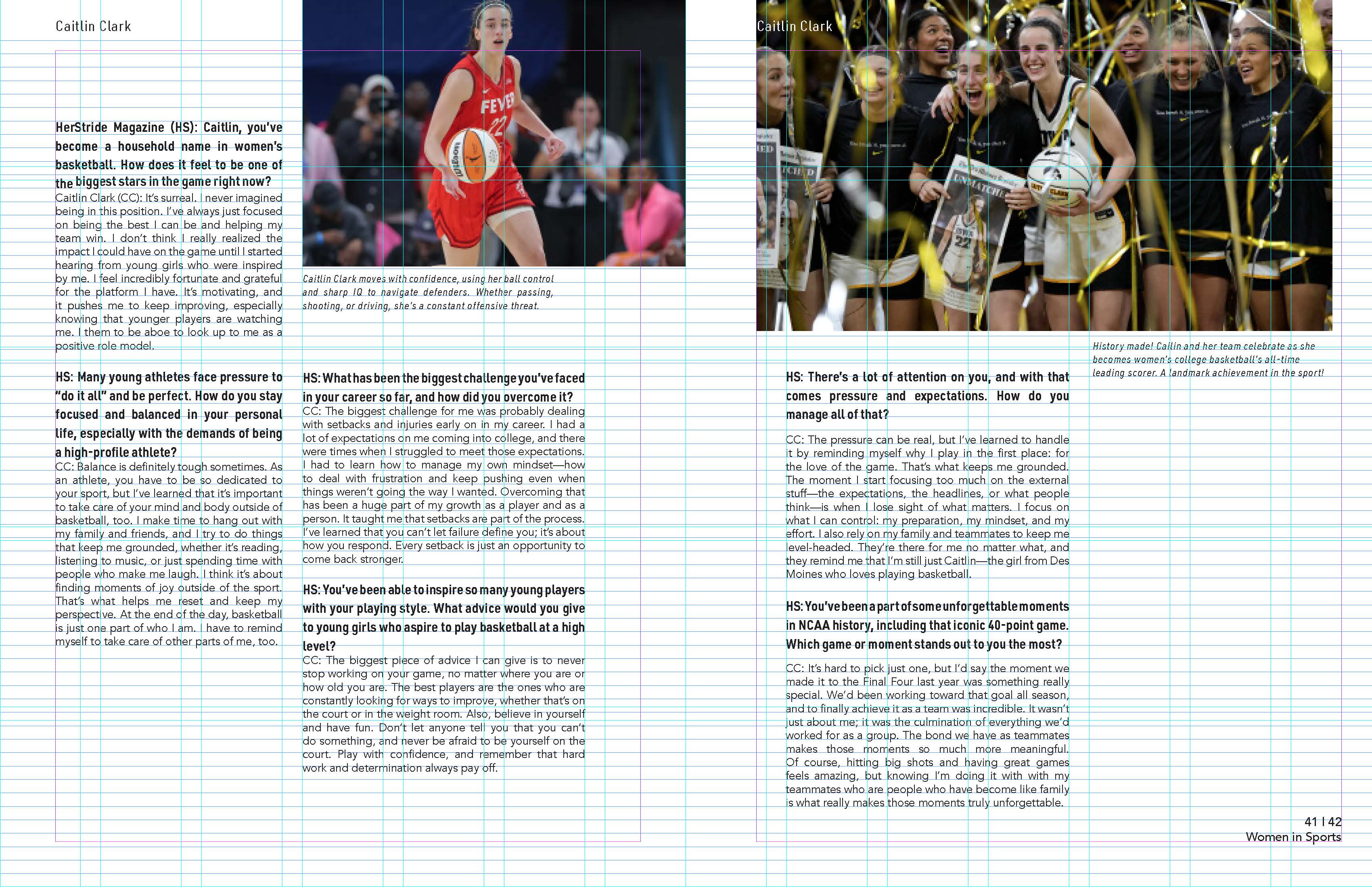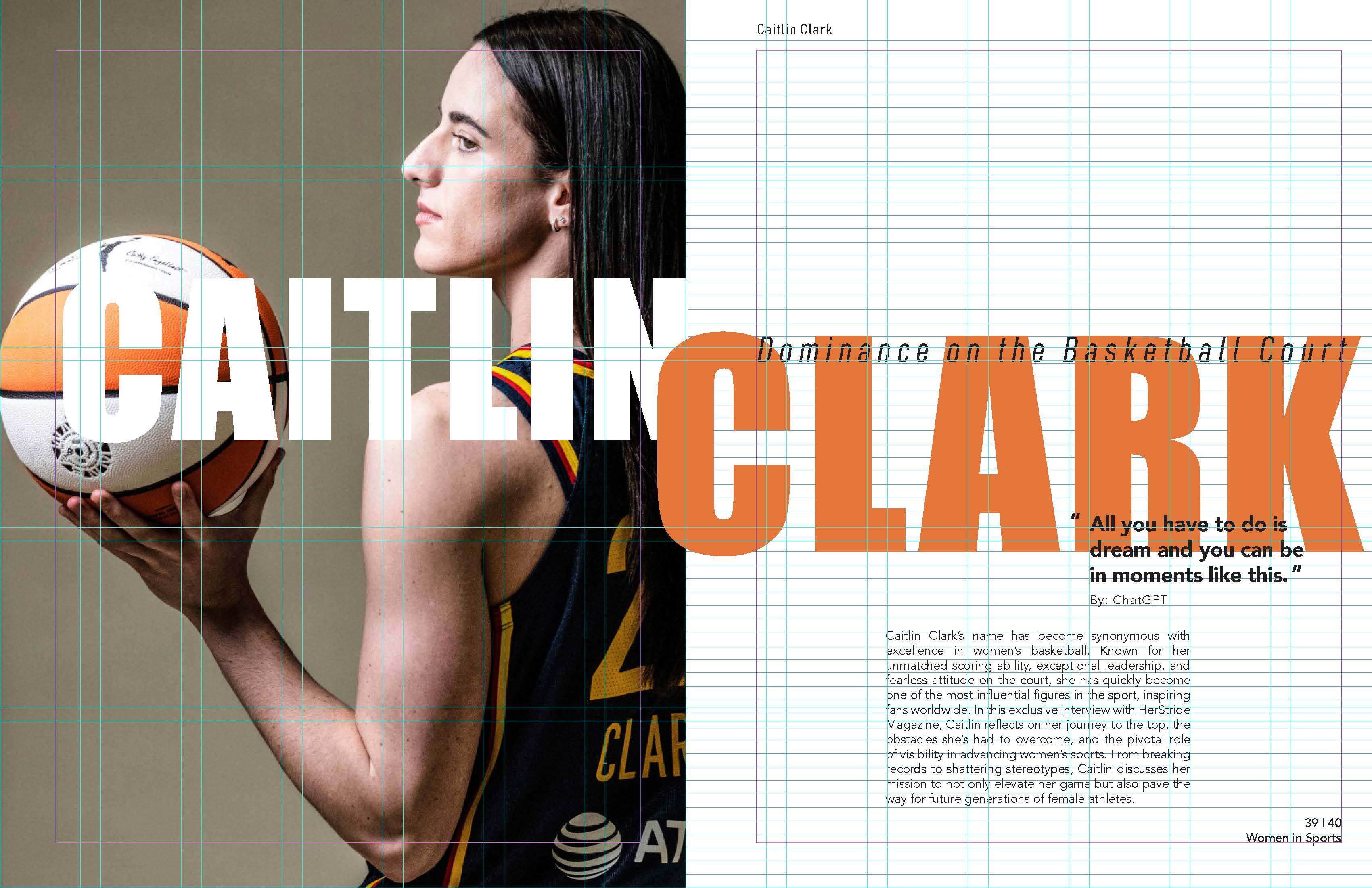 Designed a fictional sports publication titled HerStride, focusing on women in sports. I started by creating a logomark, then developed the overall identity, including the magazine cover and multiple spreads. The publication’s goal was to highlight and celebrate the achievements of women in the sports world, offering a fresh perspective within the sports media landscape.