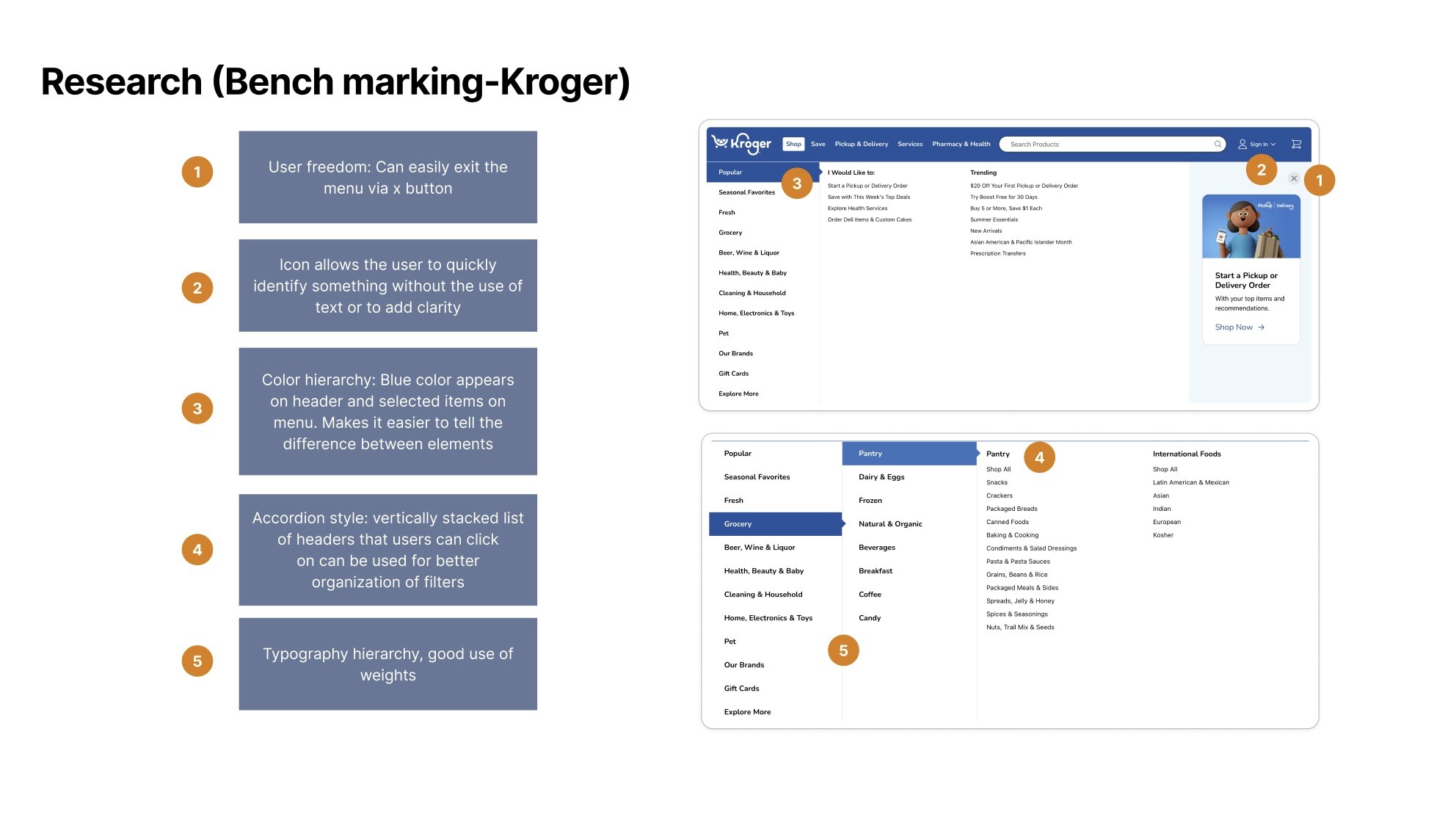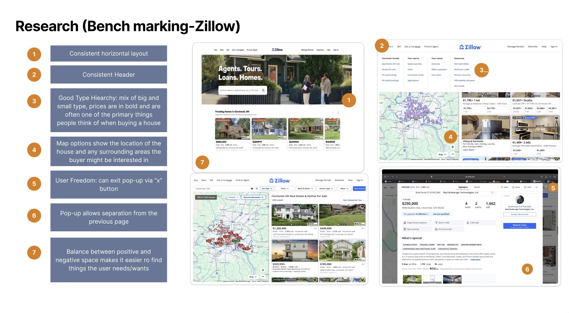 My group and I, started off the project by benchmarking similar platforms like Zillow, Instacart, and Kroger to understand effective use of hierarchy, navigation, and layout. From there, we developed personas representing older users and individuals with varying levels of digital literacy to have a foundation of our direction with this redesign. Using what we learned and applying it to user testing allowed us to move from early sketches and paper prototypes into digital wireframes. From there it was a lot of testing and refining the interface at each stage to ensure we were keeping the users needs in mind.